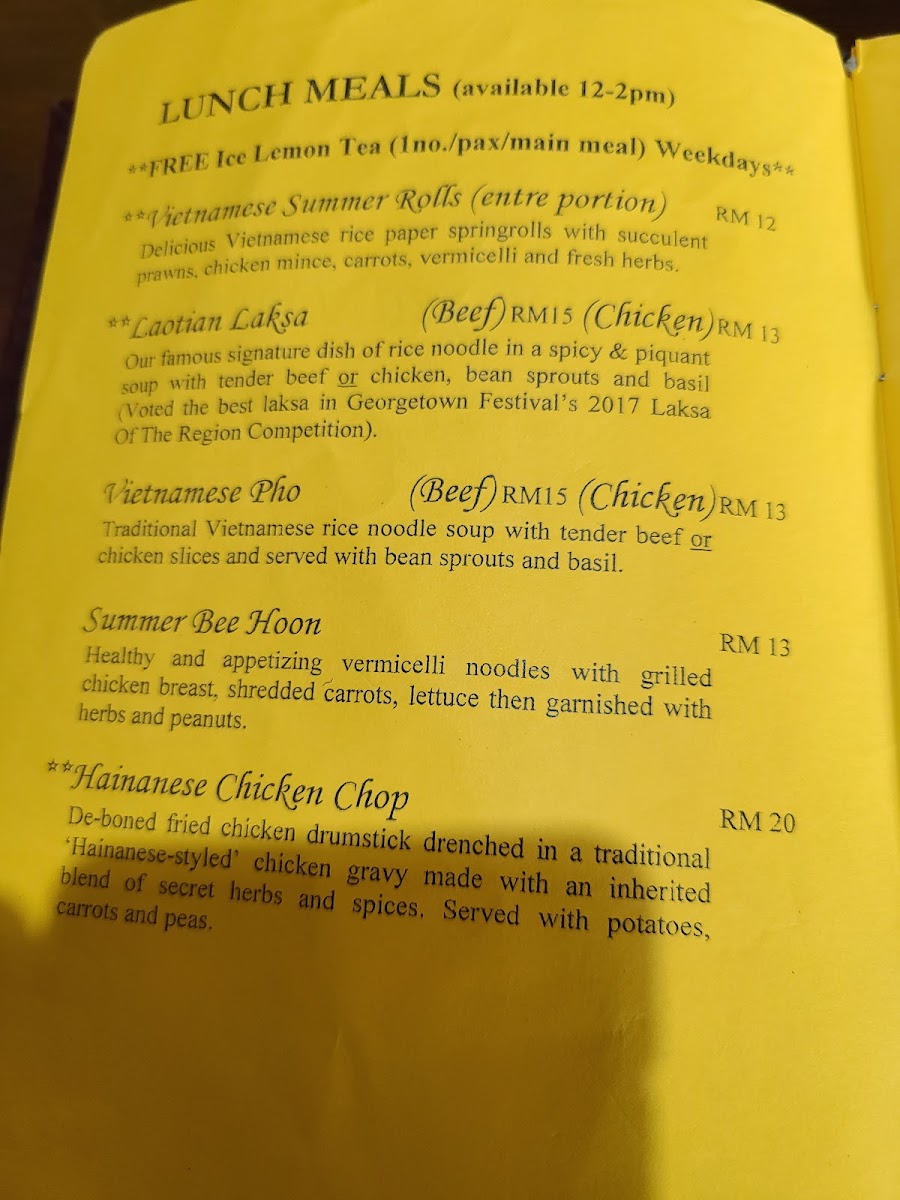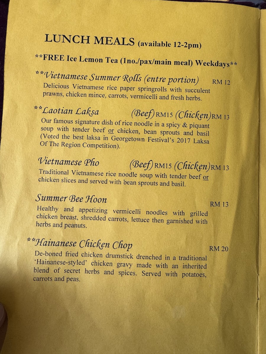 Chef's recommendation. Our famous signature dish of rice noodle in a spicy & piquant soup with bean sprouts basil voted the best laksa in Georgetown festival’s 2017 laksa of the region competition