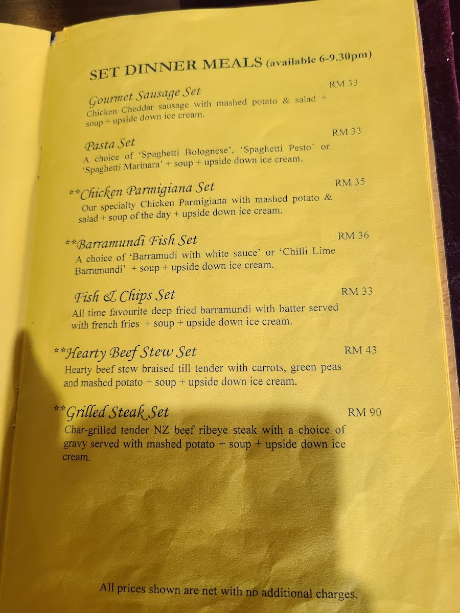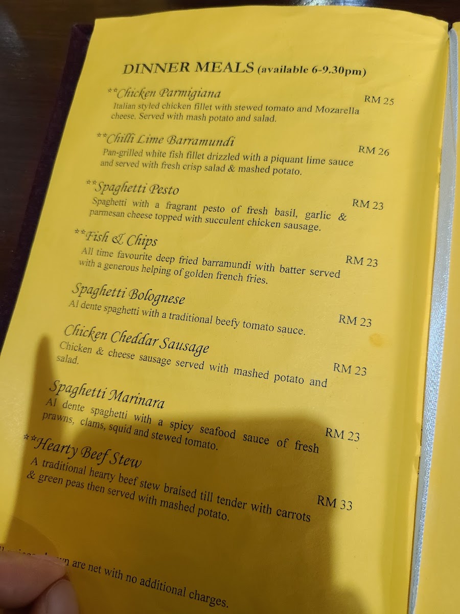 When it comes to dinner, the restaurant’s selection is equally appealing. The Pan-Grilled Barramundi with White Sauce stands out as a delightful seafood dish, offering a rich flavor profile. The Spaghetti Marinara and Spaghetti Bolognese cater to pasta enthusiasts, ensuring there’s something for everyone. For those craving something more indulgent, the Chicken Parmigiana and Fish & Chips offer a satisfying and hearty meal.